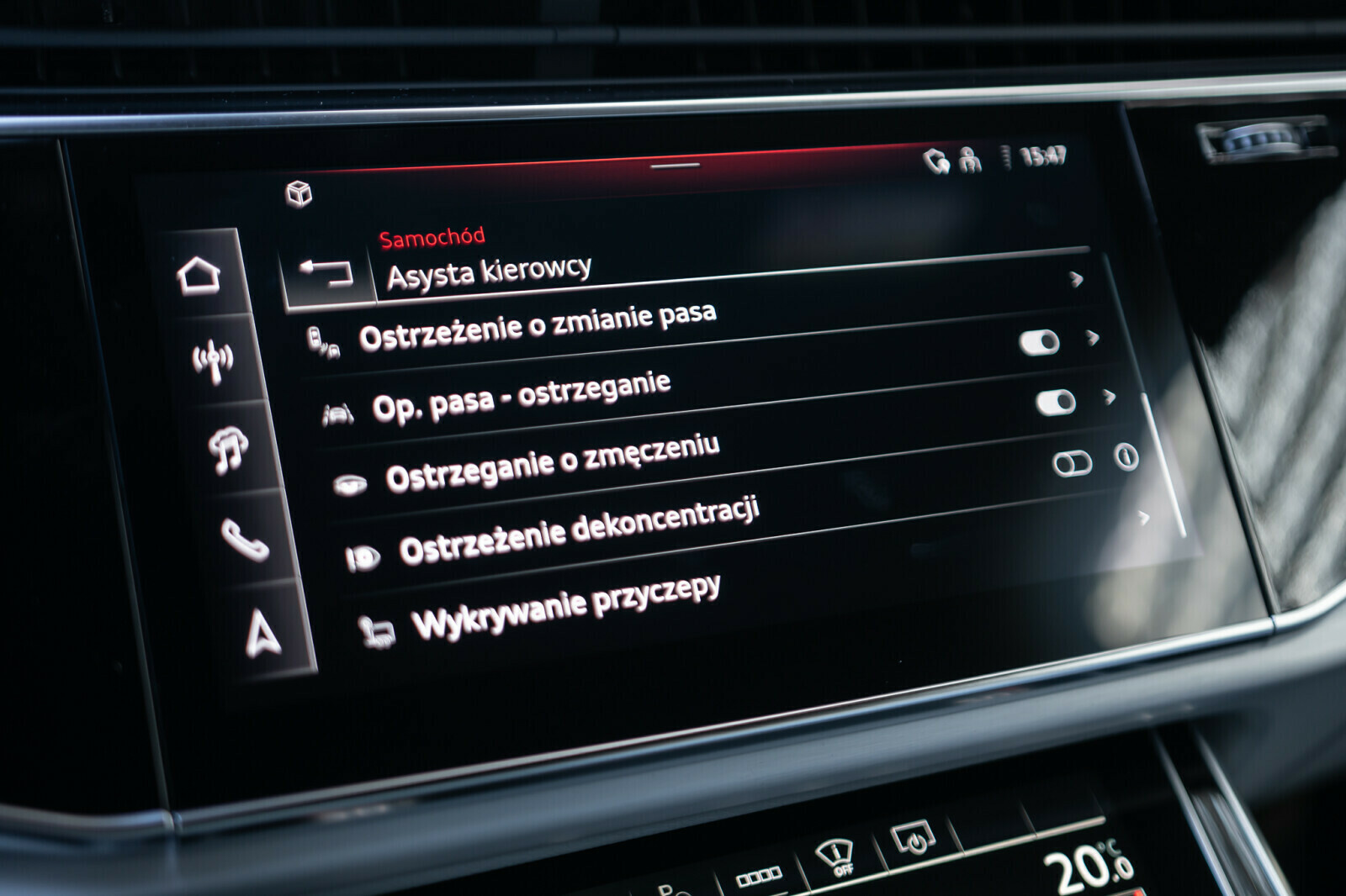 • Asystent zmiany pasa z systemem ostrzegania o zjeździe i ostrzeżeniem o ruchu z tyłu