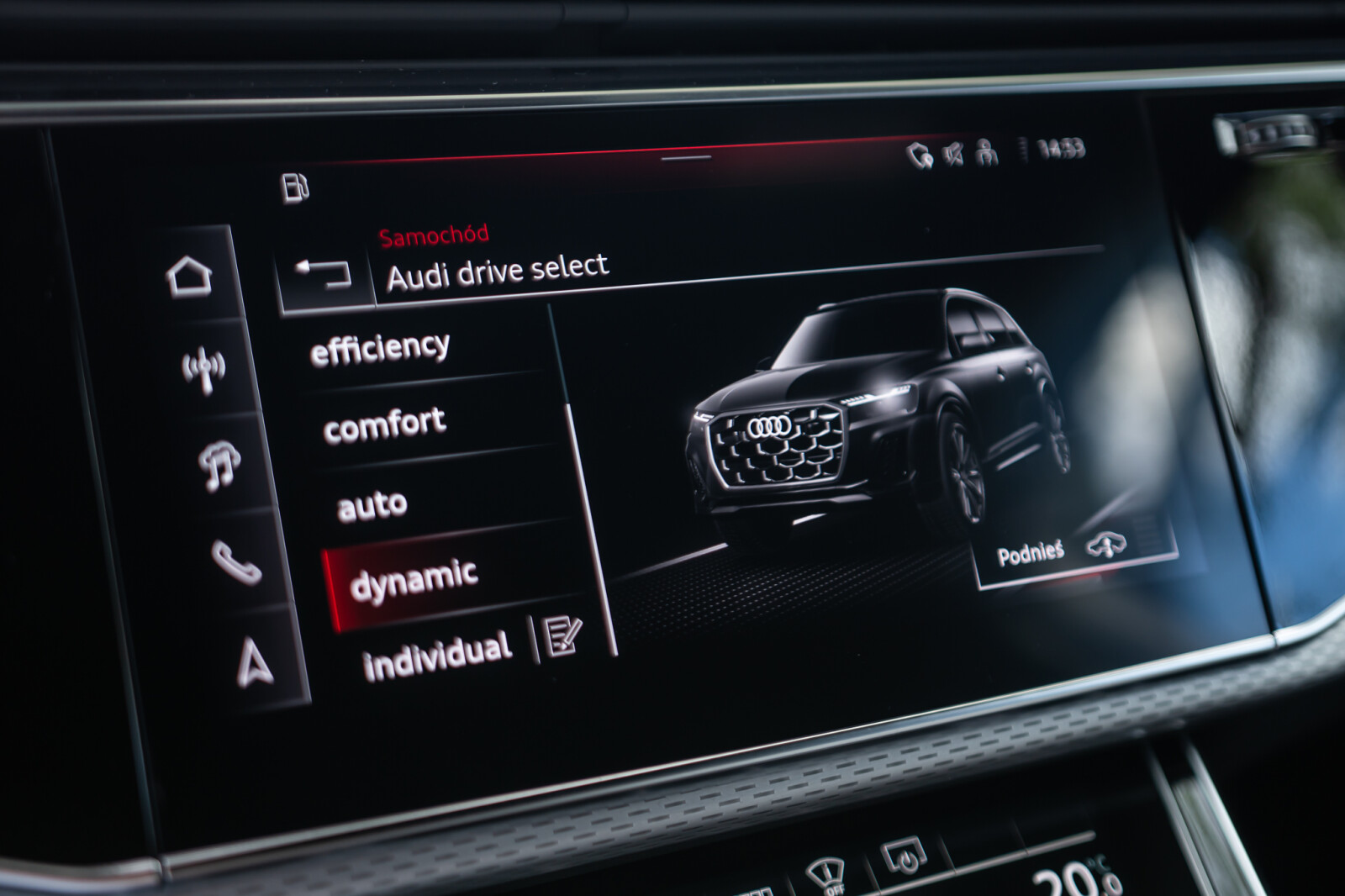 – Przyciski obsługowe czarne z połyskiem, z haptycznym feedbackiem i elementami w optyce aluminium