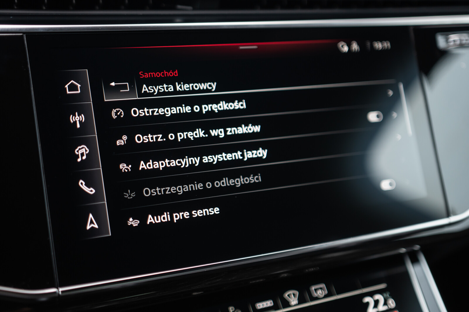 – Przyciski obsługowe czarne z połyskiem, z haptycznym feedbackiem i elementami w optyce aluminium
