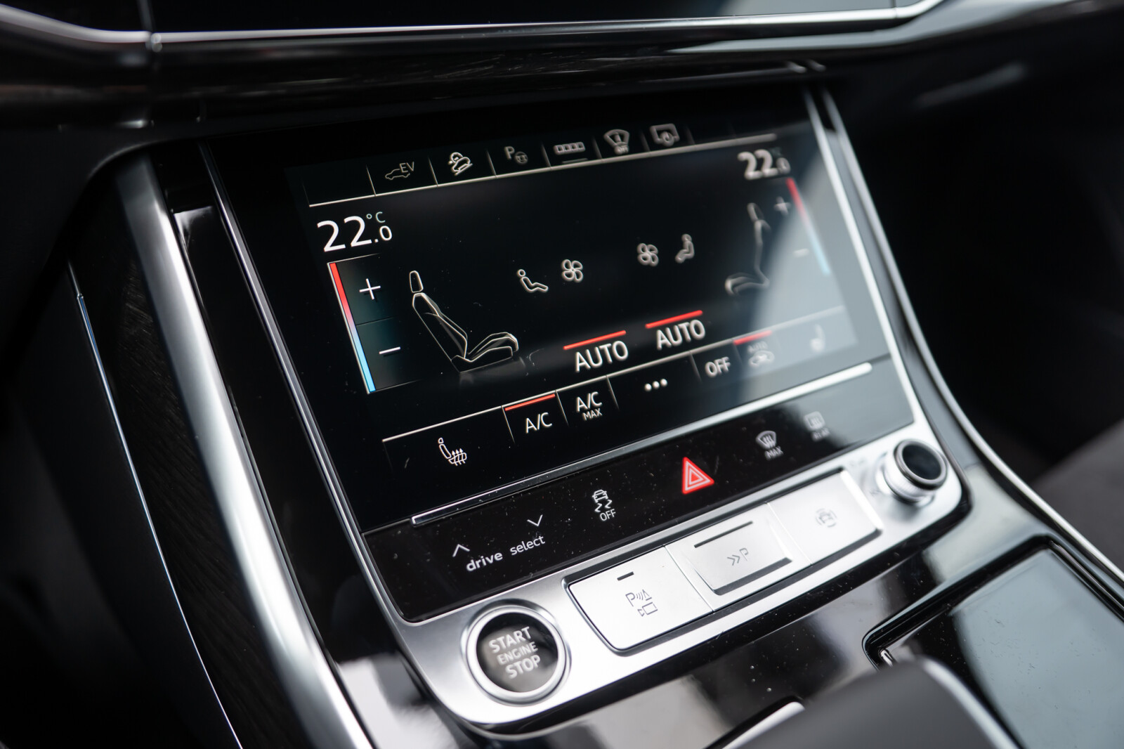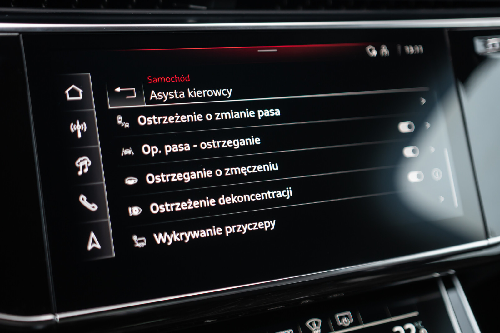 – Przyciski obsługowe czarne z połyskiem, z haptycznym feedbackiem i elementami w optyce aluminium