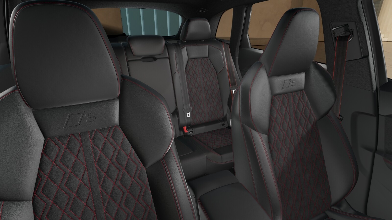 • Tapicerka z kombinacji mikrofibry Dinamica Frequenz/skóry z wytłoczonym logo S na oparciach przednich siedzeń