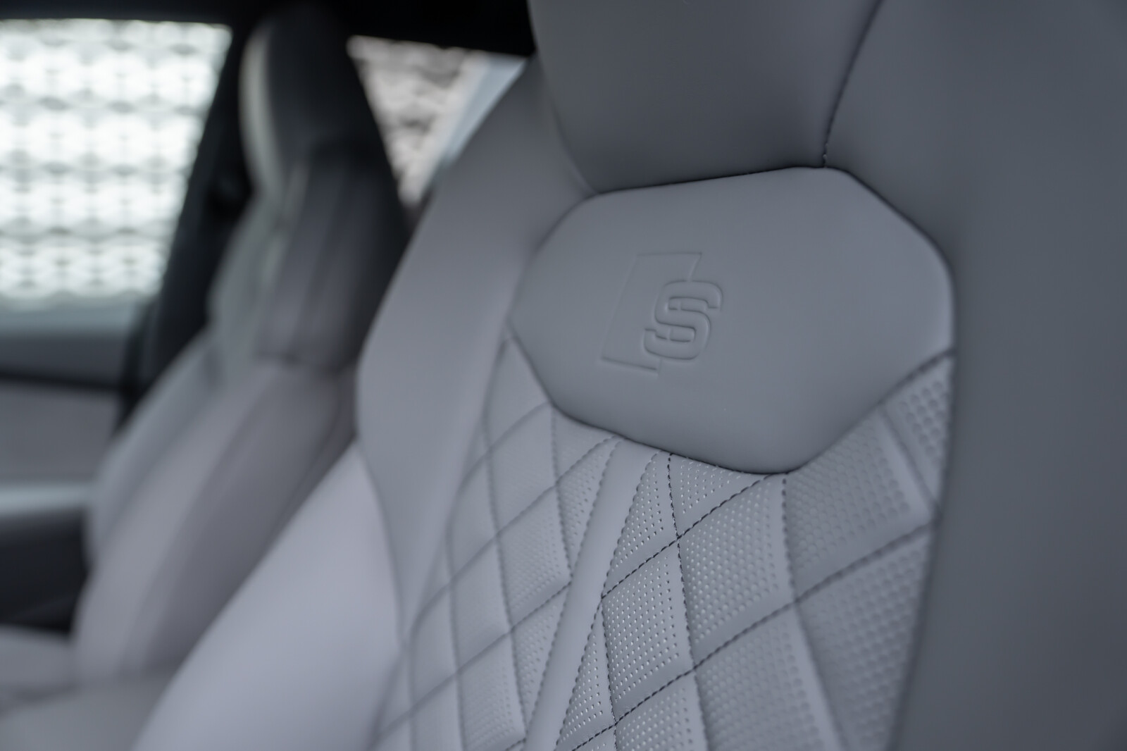 • tapicerka z kombinacji mikrofibry Dinamica Frequenz/skóry z wytłoczonym logo S na oparciach przednich siedzeń