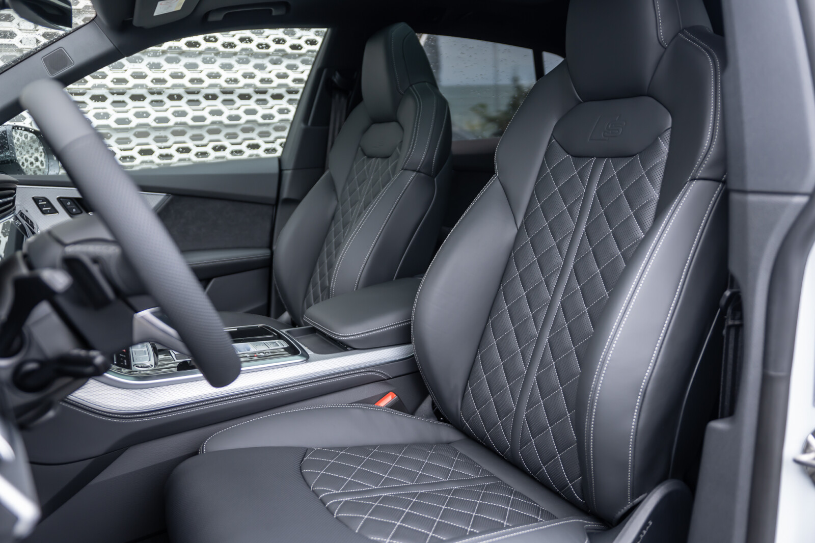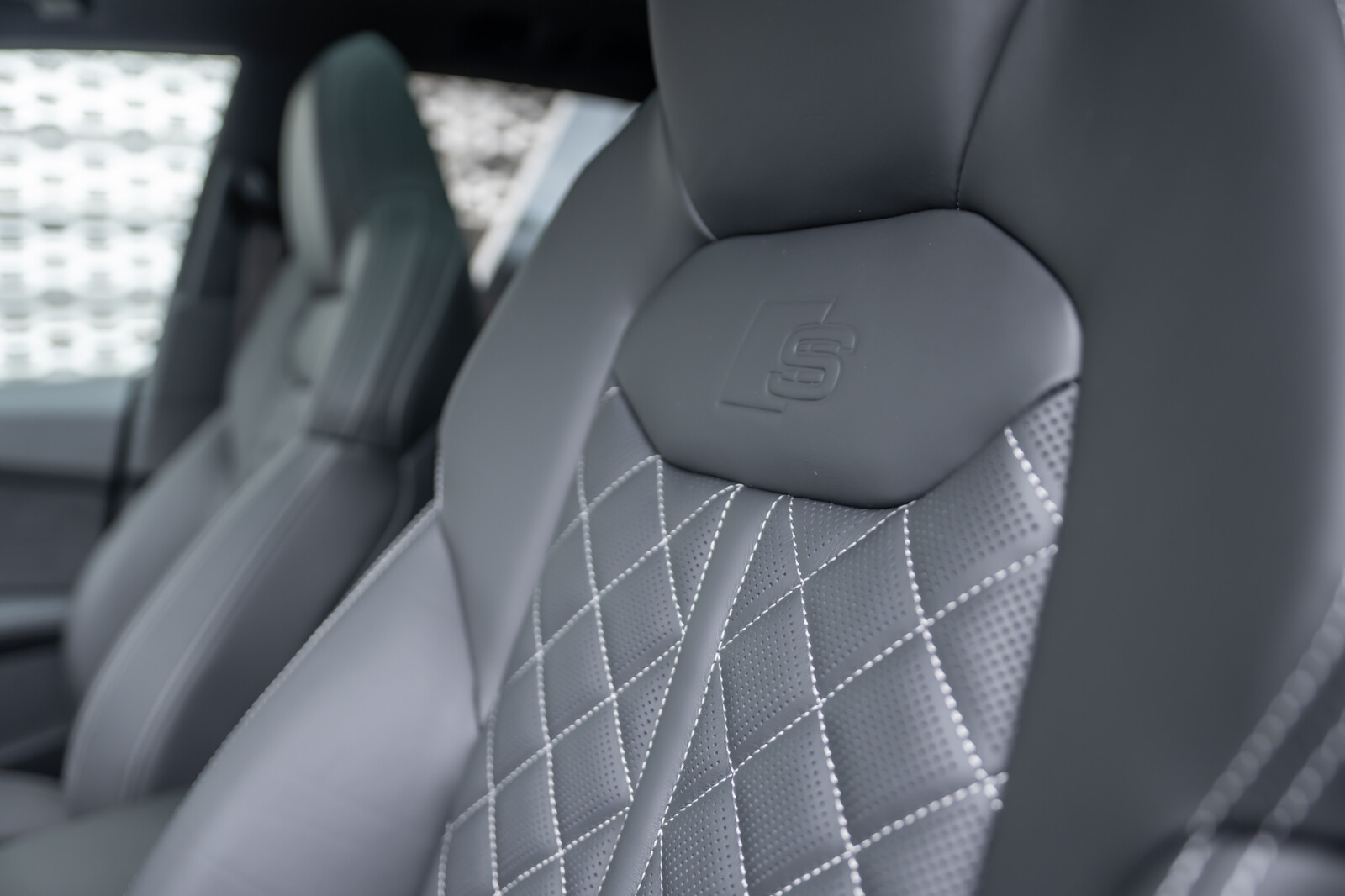 • tapicerka z kombinacji mikrofibry Dinamica Frequenz/skóry z wytłoczonym logo S na oparciach przednich siedzeń