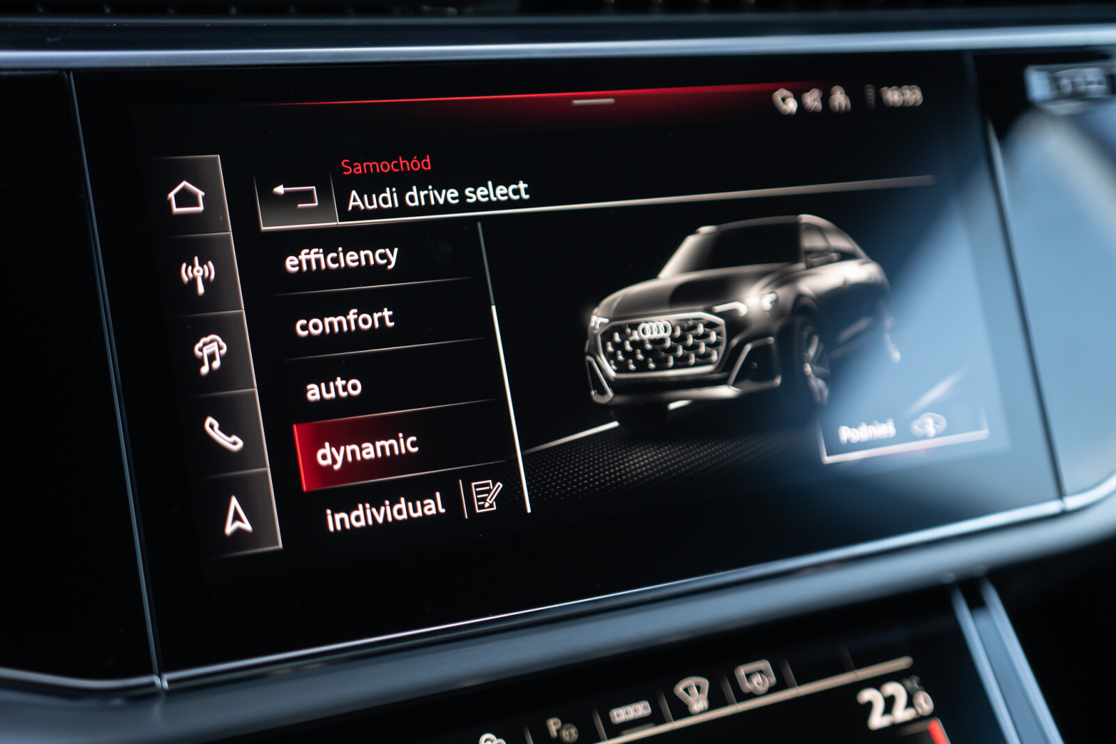 – Przyciski obsługowe czarne z połyskiem, z haptycznym feedbackiem i elementami w optyce aluminium