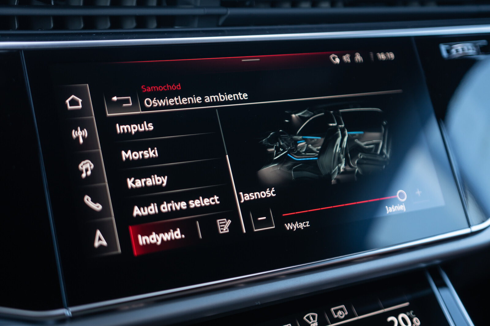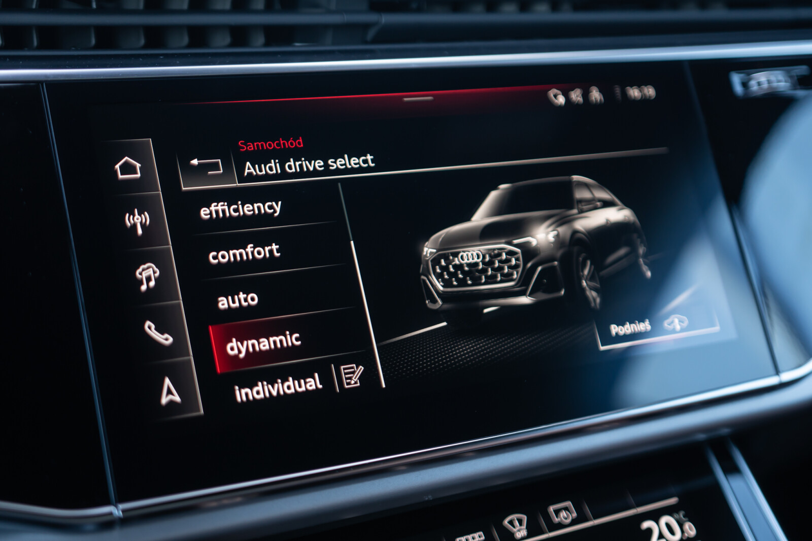 – Przyciski obsługowe czarne z połyskiem, z haptycznym feedbackiem i elementami w optyce aluminium
