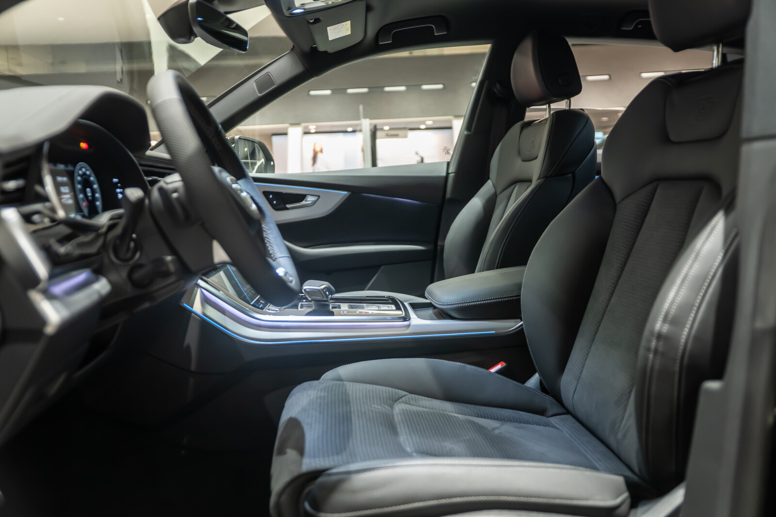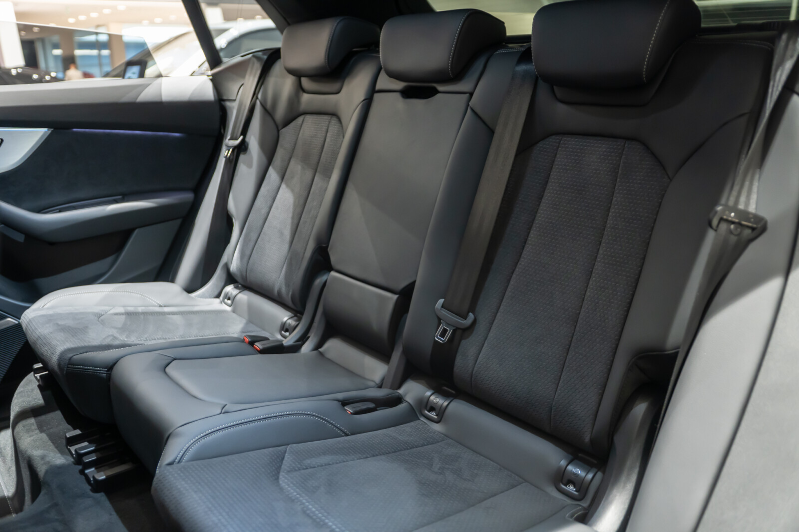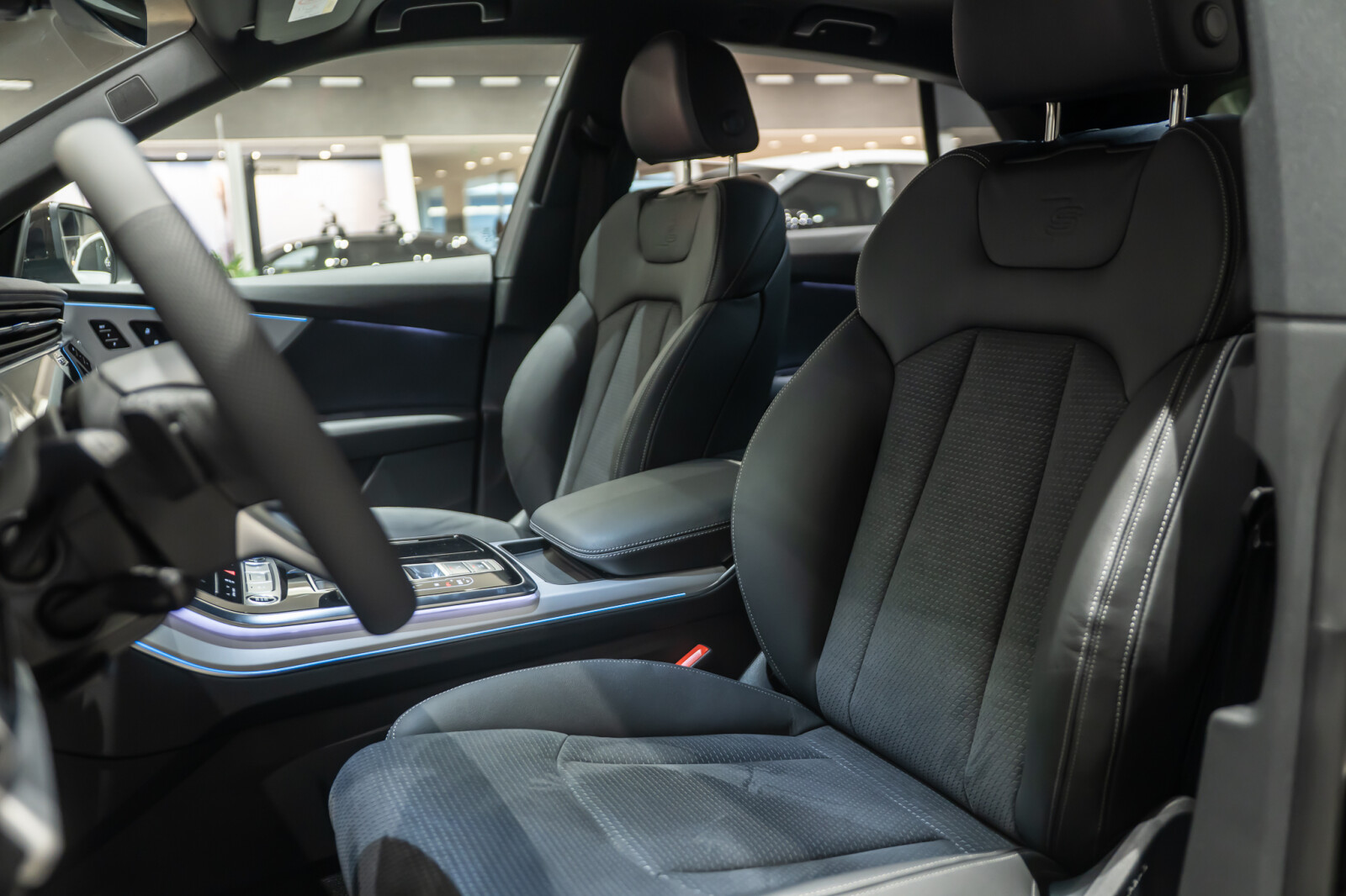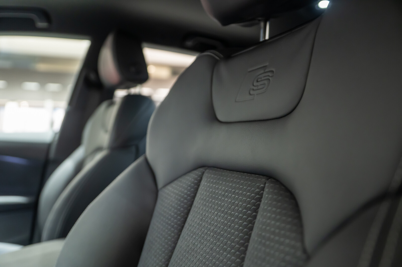 • tapicerka z kombinacji mikrofibry Dinamica Frequenz/skóry z wytłoczonym logo S na oparciach przednich siedzeń