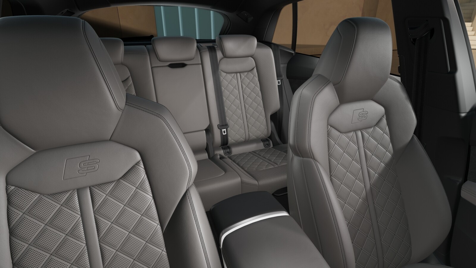 • tapicerka z kombinacji mikrofibry Dinamica Frequenz/skóry z wytłoczonym logo S na oparciach przednich siedzeń