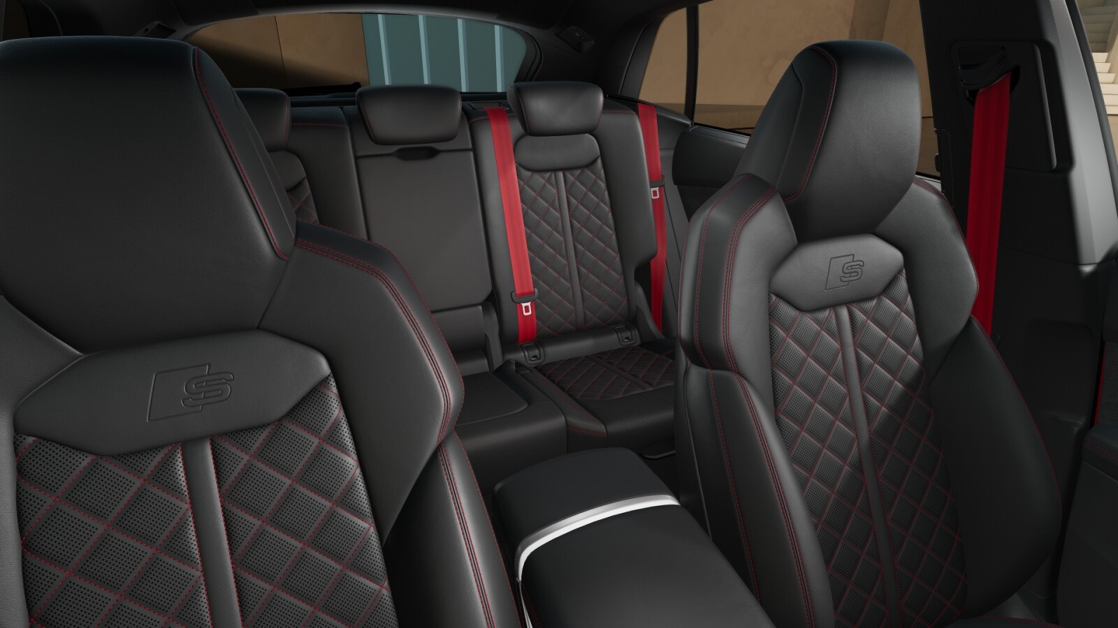 • tapicerka z kombinacji mikrofibry Dinamica Frequenz/skóry z wytłoczonym logo S na oparciach przednich siedzeń