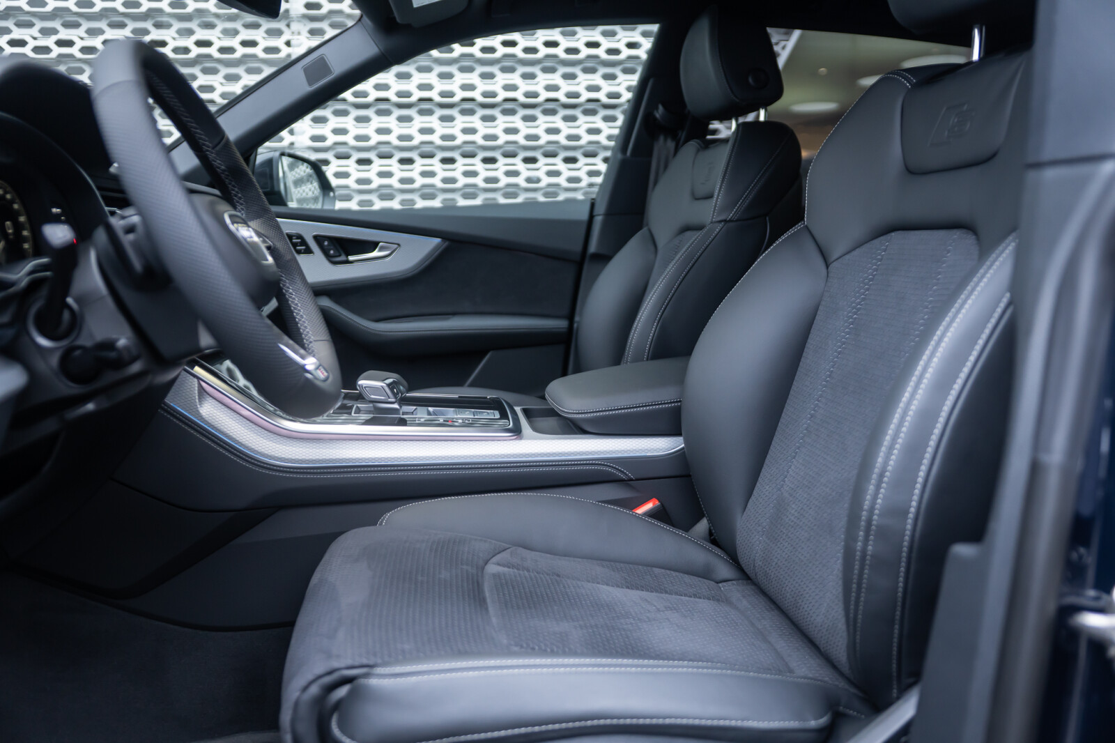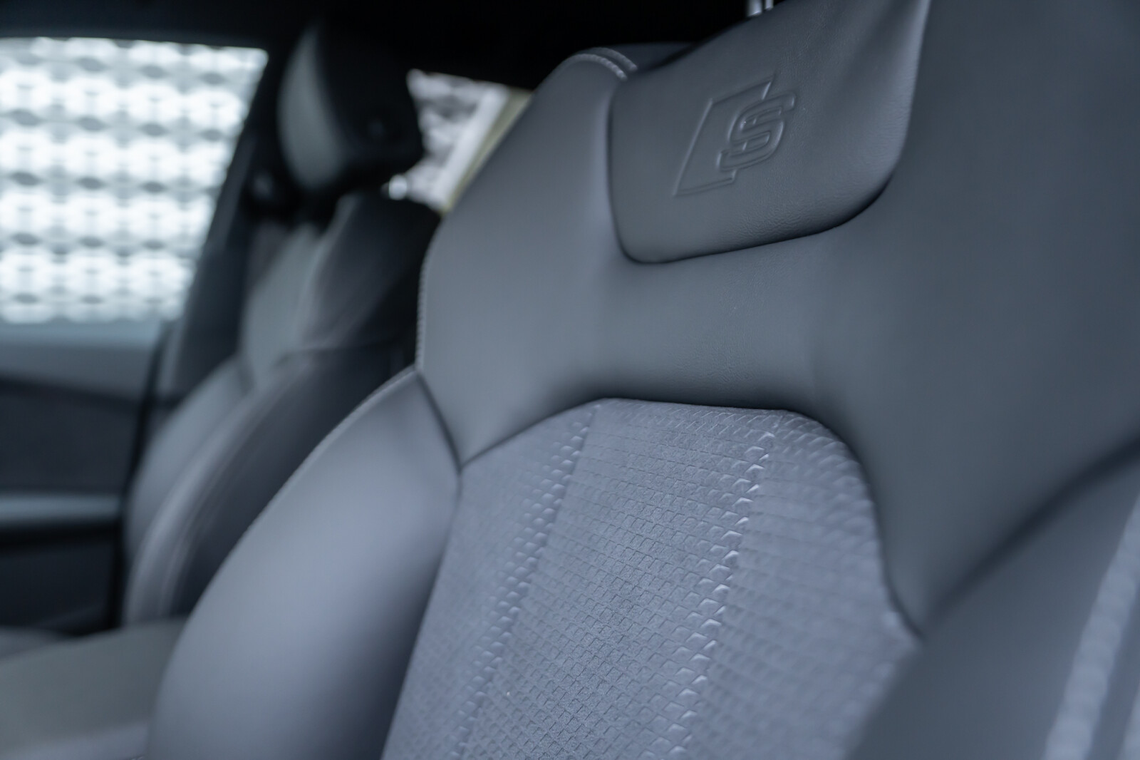 • tapicerka z kombinacji mikrofibry Dinamica Frequenz/skóry z wytłoczonym logo S na oparciach przednich siedzeń