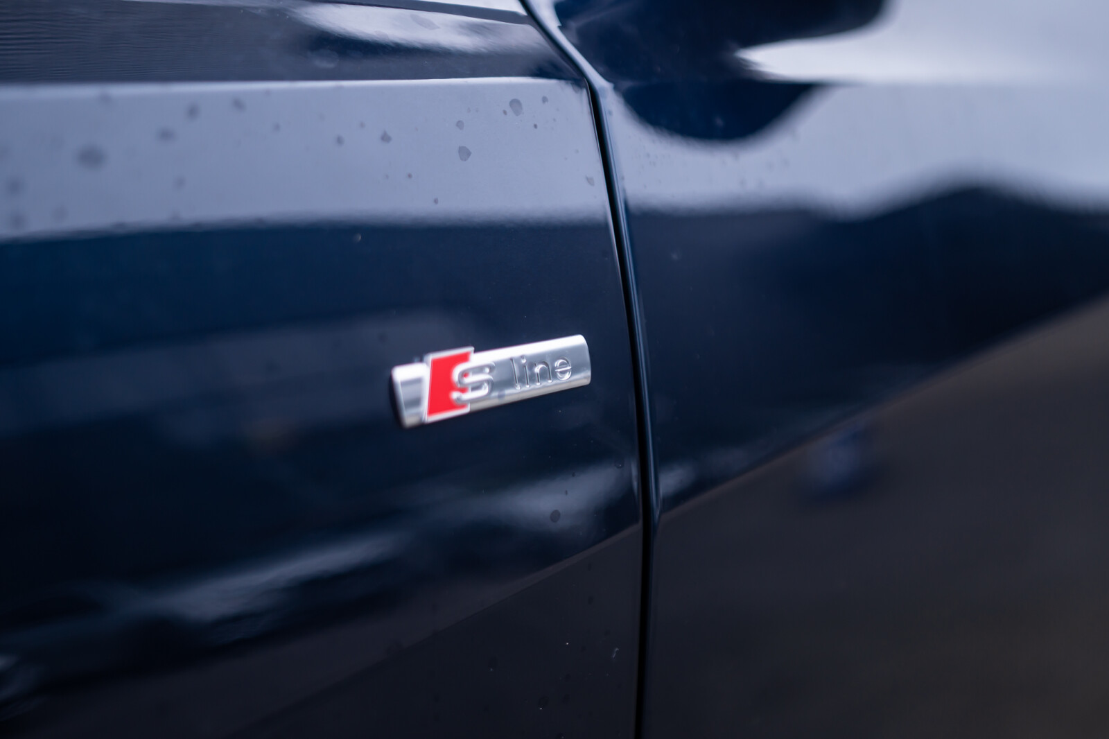 • 3-ramienna kierownica wielofunkcyjna z przyciskami zmiany przełożenia, obszyta czarną skórą, boczne segmenty ze skóry perforowanej, emblemat S line oraz chromowane aplikacje
