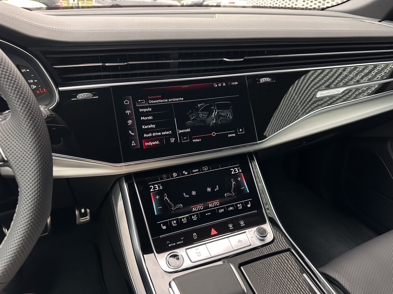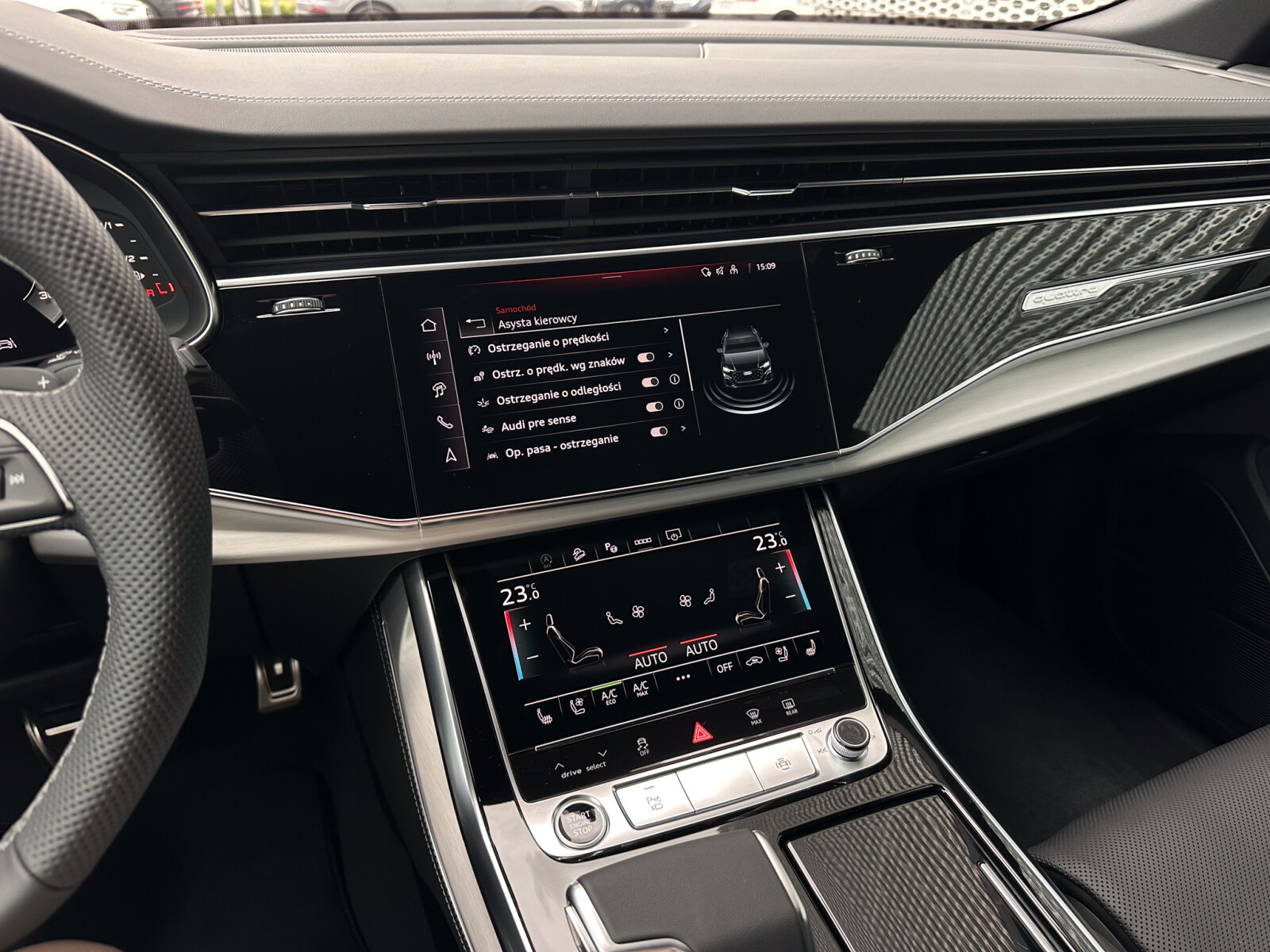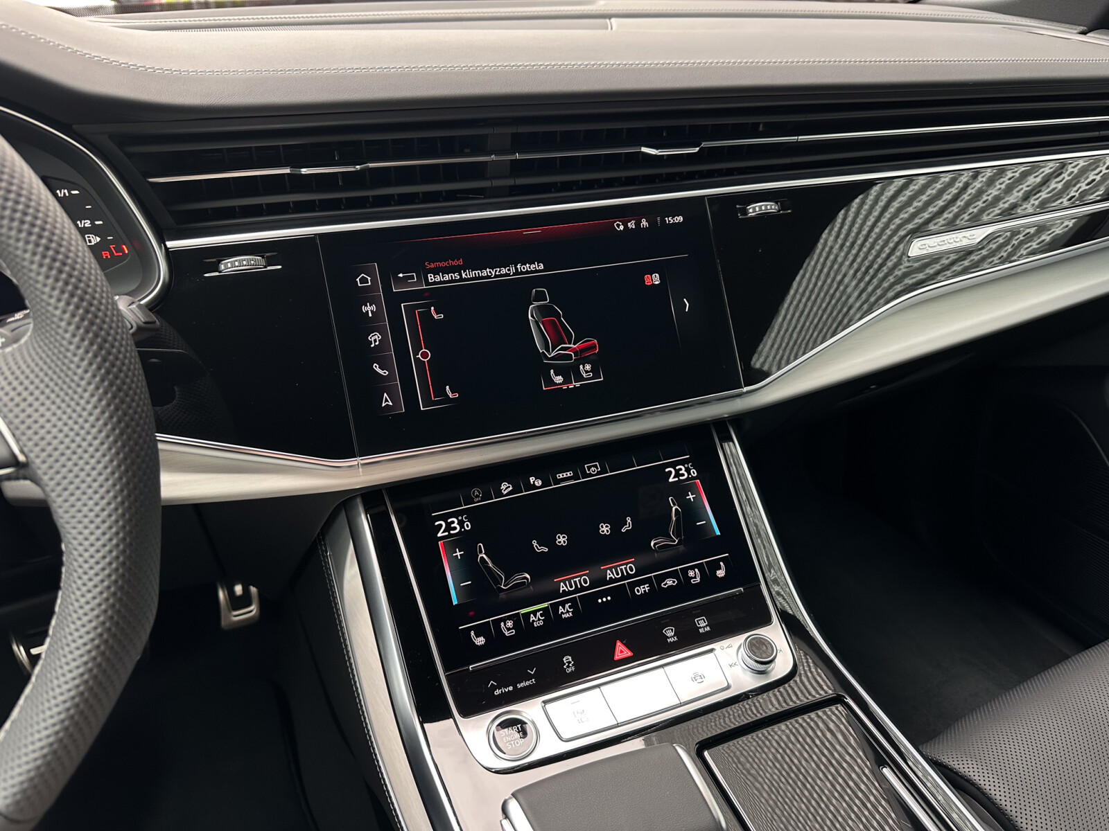 – Przyciski obsługowe czarne z połyskiem, z haptycznym feedbackiem i elementami w optyce aluminium