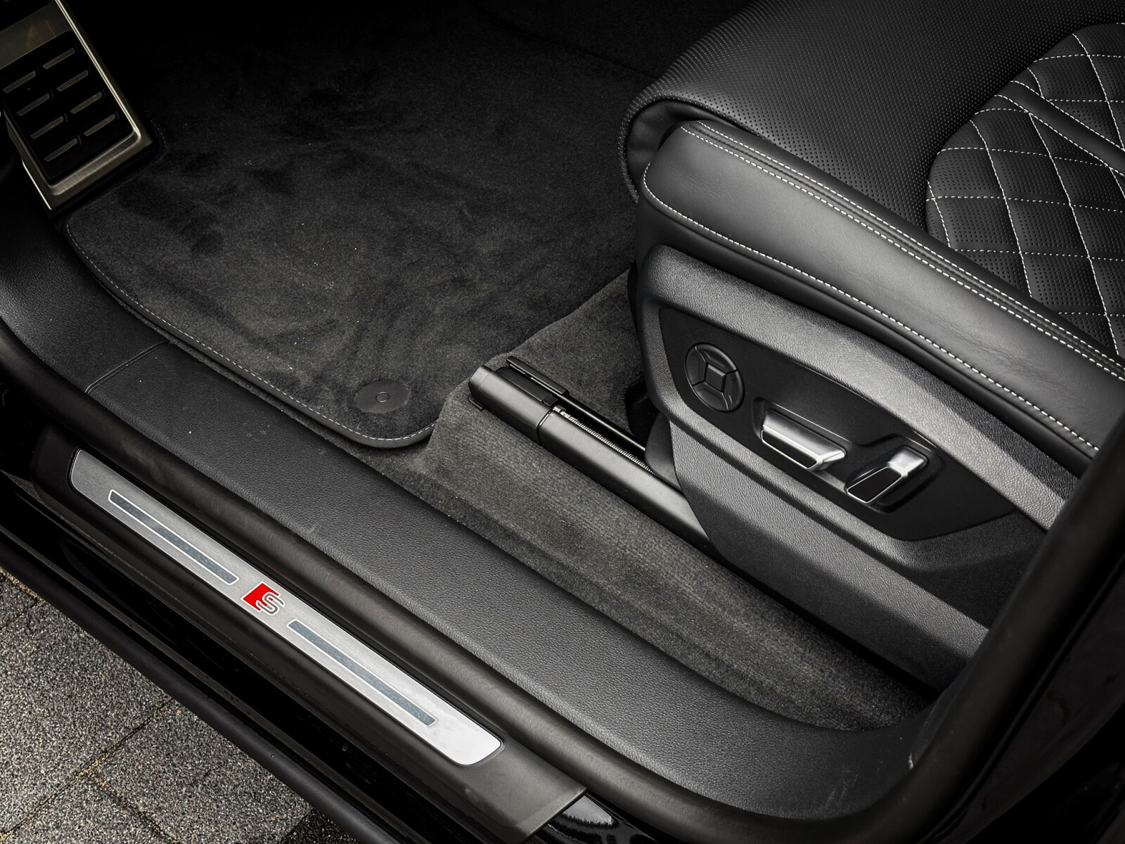 – Skóra Valcona z logo S, pikowana w romby