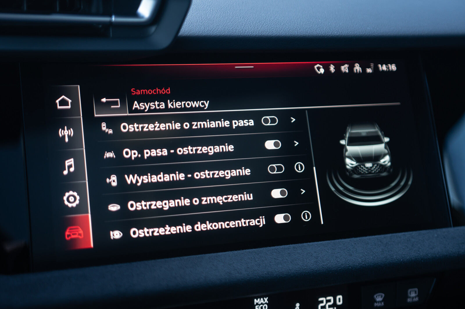 • Funkcja ostrzegającą przy zmianie pasa ruchu wraz z ostrzeżeniem przy wysiadaniu i asystentem ruchu przecinającego tor jazdy z tyłu