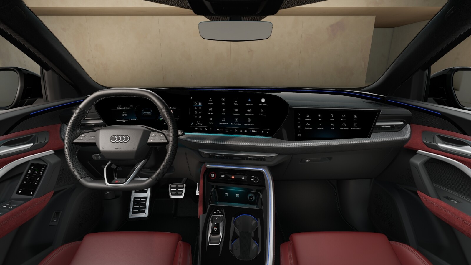 – Pakiet Interieur S z siedzeniami sportowymi, czerwona skóra