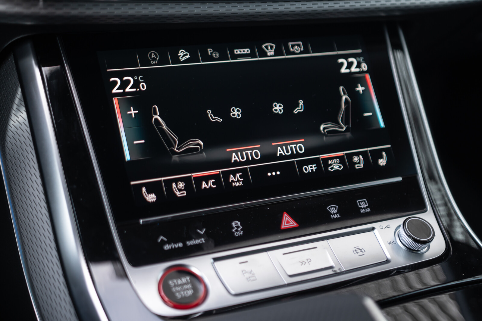 – Przyciski obsługowe czarne z połyskiem, z haptycznym feedbackiem i elementami w optyce aluminium